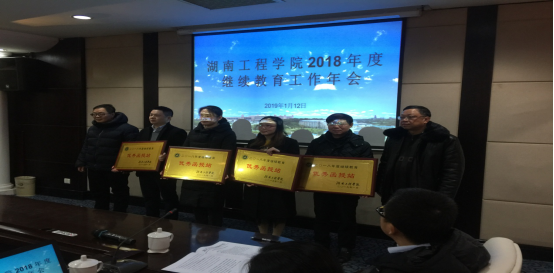 继续教育学院李建军院长通报了2018年继续教育学院各项工作任务指标完成情况,结合我校继续教育面临的新形势、新要求和新使命、新任务,制定新的一年继续教育工作计划,安排部署创新发展举措。2018年,继续教育学院秉承坚持创新引领,稳健发展的整体工作理念,明确“立足湖南,侧重云南广东福建,稳步发展成人高等学历教育,拓展非学历继续教育培训”的工作思路,不断提高学校继续教育的管理水平、服务质量和办学效益,顺利完成学校年度目标任务。2018年,继续教育学院主要开展了如下六项工作:一是完成79个专业(其中“专升本”专业45个、“高升本”专业27个、“高升专”专业7个)成人高等学历招生专业申报工作;二是完成首个《湖南工程学院继续教育发展2017年度质量报告》编制工作;三是规范做好成人高等学历教学与教务管理各个环节的工作,全面修订了《2019级人才培养计划》和编订了《湖南工程学院成人教育教材指导书目》;四是新增建设完成省内4个函授站点,筹建省外云南函授站已获省厅批复;五是积极申报设立学校省市二级专业技术人员继续教育基地,接受省厅答辩审核,市级基地已获批准;六是主动构建远程教学信息化平台,建设拥有一千多门网络课程教学资源,全面提升了我校继续教育教学和管理的信息化水平。2019年学校继续教育的主要工作思路是:深入贯彻落实全国教育大会精神,积极谋求转型升级,借助网络教育平台,完成线上线下混合式教育改革,大力提升教育教学质量,实现办成人民满意的教育的目标。主要工作包括:一是按照省厅文件精神,完成各函授站年度办学审核与备案管理工作;二是狠抓教育教学质量,规范办学行为,按照《湖南工程学院成人教育人才培养计划》严格执行教学计划,按照《湖南工程学院成人教育教材目录指南》,配备齐相应教材,严禁无教材、无资料授课,加强毕业设计(论文)组织工作;三是严格学籍注册与管理,实行新的注册管理要求,对函授站归属信息不全,没有交清第一年学费的新生将不予注册;四是启动远程教育平台,开展线上线下混合式教学改革,学院明确要求,每个函授站必须采用线上平台方式开展教育教学与教务管理,2018、2019级学生必须注册平台,各函授站启动开展线上线下混合式教学改革;五是努力扩大招生规模,清理整顿规模偏小的函授站点。